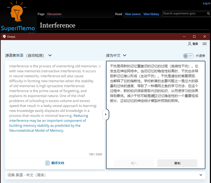 干扰是用新的记忆覆盖旧的记忆的过程(追溯性干扰)。它发生在大脑的神经网络中。当旧记忆的较高时,干扰也会导致新记忆难以形成(主动干扰)。干扰是[1]的首要原因,也解释了它的。[2]的主要问题之一是过大的容量和过快的速度,导致了一种[3]:在这个过程中,新的知识很容易取代旧的知识,从而使学习的效果降到最低。减少干扰可能是建立记忆的一个重要组成部分,正如[4]所预测的那样