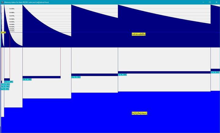 SuperMemo 18 for Windows 采用遗忘曲线[3]和记忆双组分模型[4],做出最佳间隔的预测。