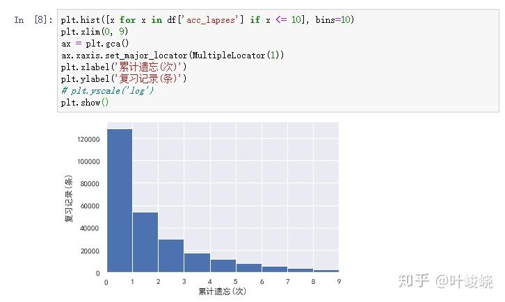 不同累计遗忘次数对应的记录数量