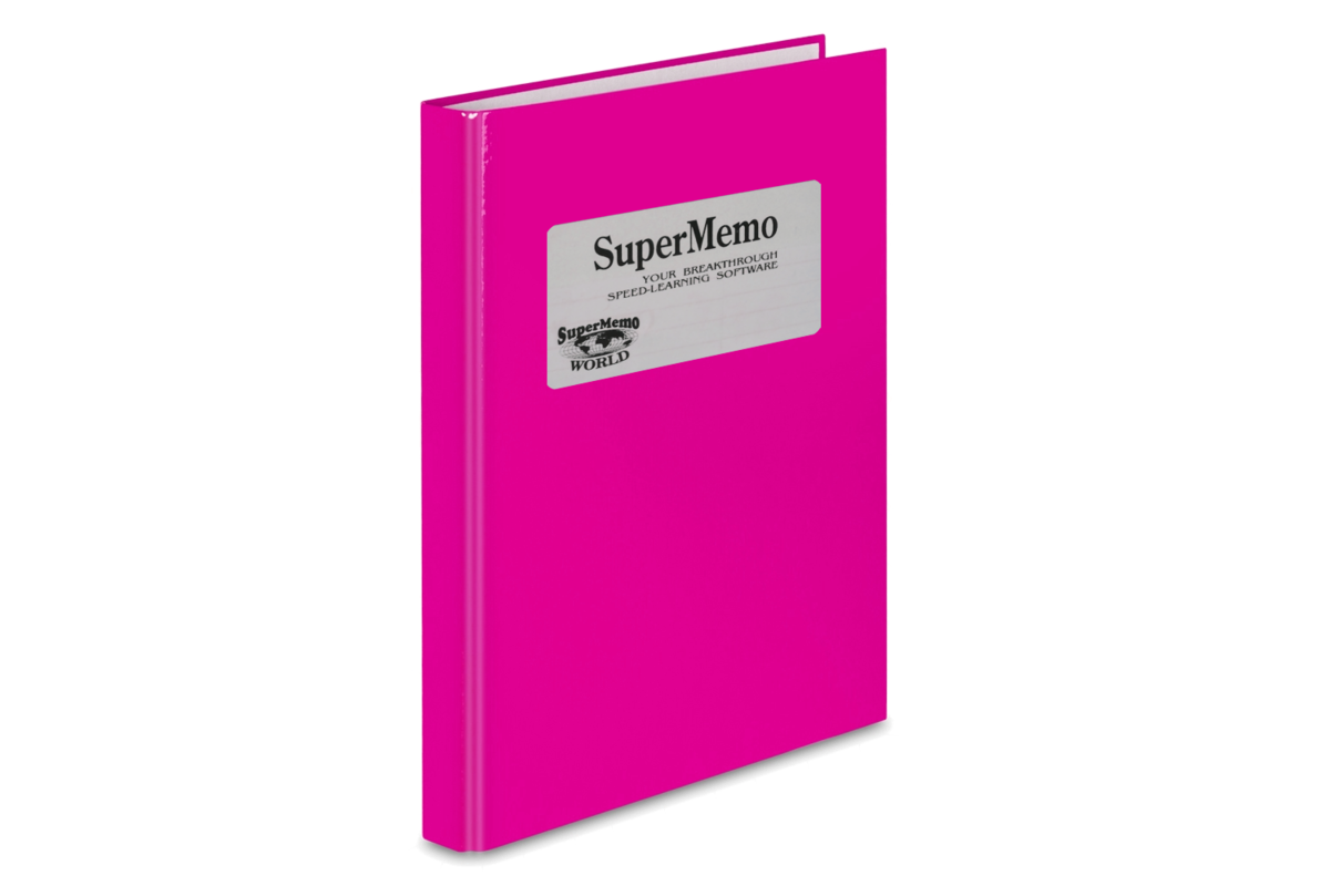 图:1991 年,我们将 DOS 版 SuperMemo 5 的第一批拷贝装在粉红色的文件夹中,贴好贴纸,送到波兹南(波兰)的商店。软件所附的手册没有波兰语翻译。令人惊讶的是,竟有一些买家光顾我们。 1991 年 9 月 9 日至 11 日之间,在 Axe Prim 电脑店,第一笔买卖做成了,可惜该店已不复存在(图片是根据原始文件夹和贴纸重建的)