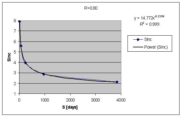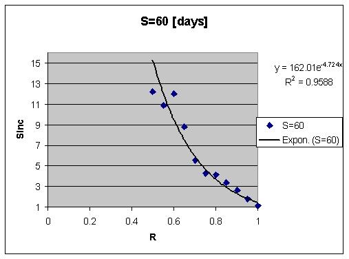 这里有一组取 S 为常数的 SInc 对 R 的函数的示例数据。我们可以看到 SInc=f(R) 可以很好地用一个负指数函数进行近似: