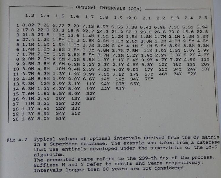 之后沃兹还做了第五次复习的最佳间隔的实验。但每个阶段要花费的时间差不多是前一个阶段的两倍。最终他确定了纸上算法 SM-0: