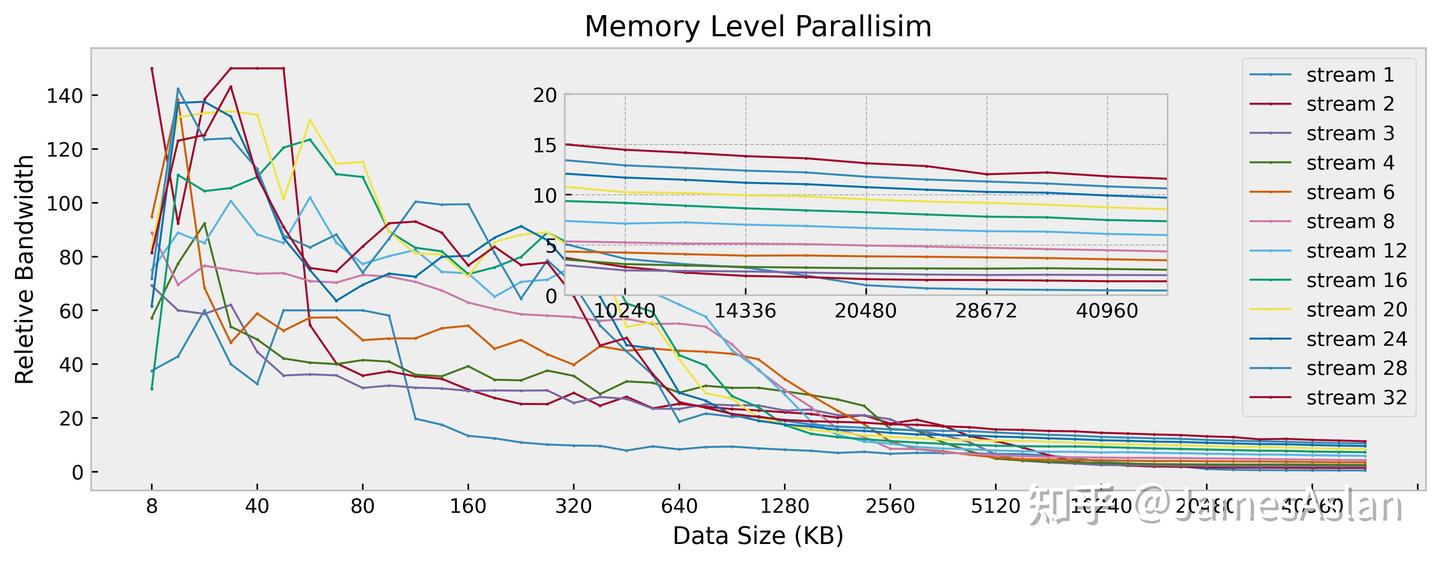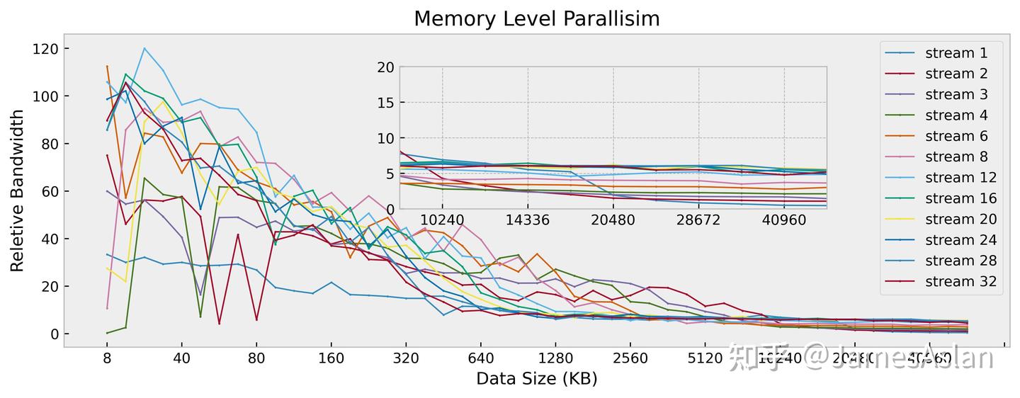 与前代X4相比时,X925在近核端的多流倍率收益显然更高,可能与AGU的load吞吐量由3/cycle增长到4/cycle有关。而下级内存端,X925最大的有收益流数量仍然远小于32流,表现较差;作为对比,Firestorm、Oryon等能均达到接近32流。