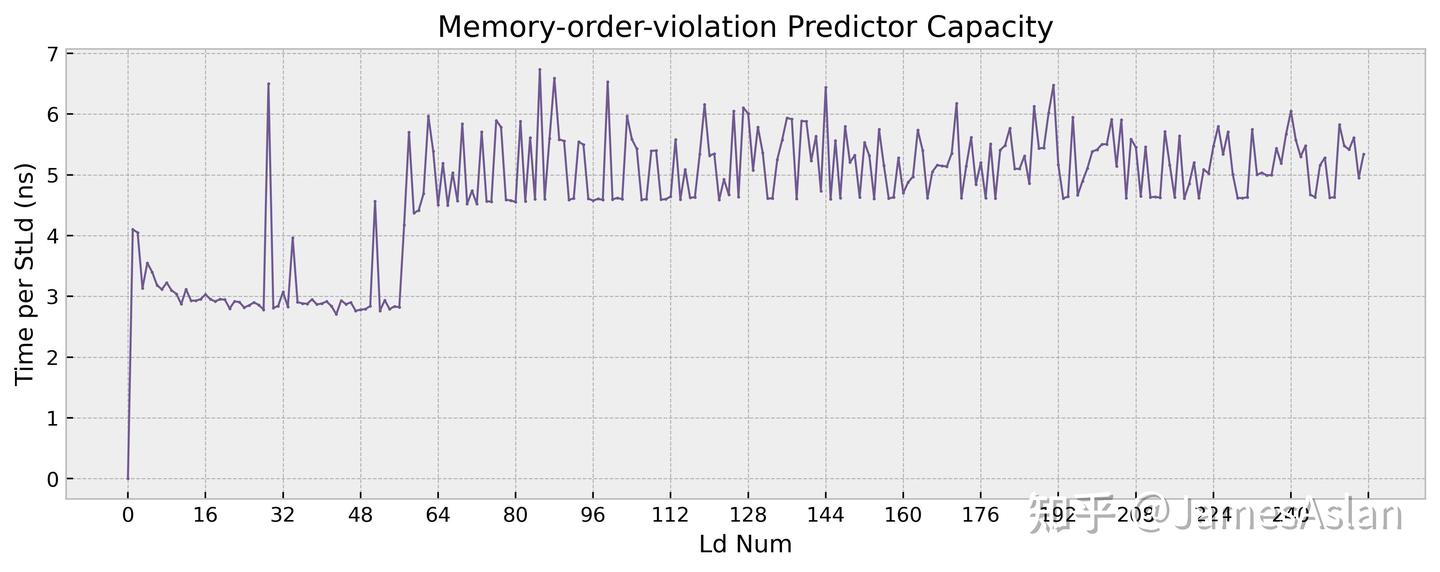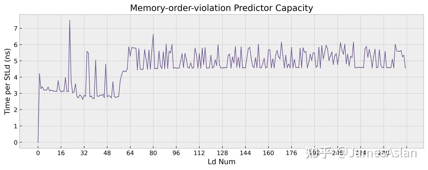 我们由此可知X925没有采用三或四体复制的设计的迹象(这样的设计过于暴力 ,概率很小);X925同样也没有Oryon和Apple那样的按照地址interleave分block的设计,因为没有严重的直接地址冲突迹象;再结合其较高的吞吐率,可以推测其采用了路预测,具体的算法有待今后通过hash冲突的方式精细探究。